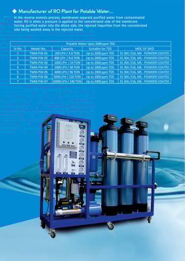 At TWM Engineering & Services LLP, we also specialize in the manufacturing of RO Plants, offering advanced solutions for safe, pure, and healthy water. Our systems are designed for both industrial and domestic applications, ensuring purity, efficiency, and long-term reliability.